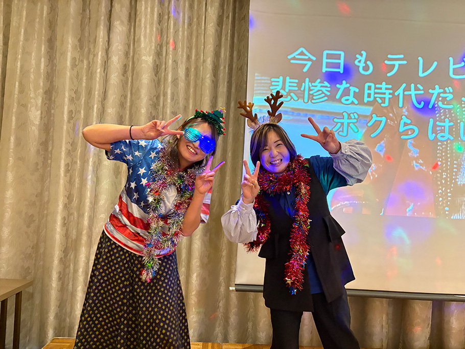 今年は、ホテルでクリスマス会を楽しみました。歌にダンスに美味しいお料理、そしてサンタクロースさんにも会えました