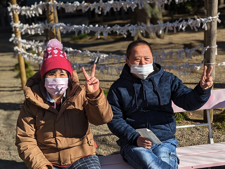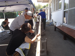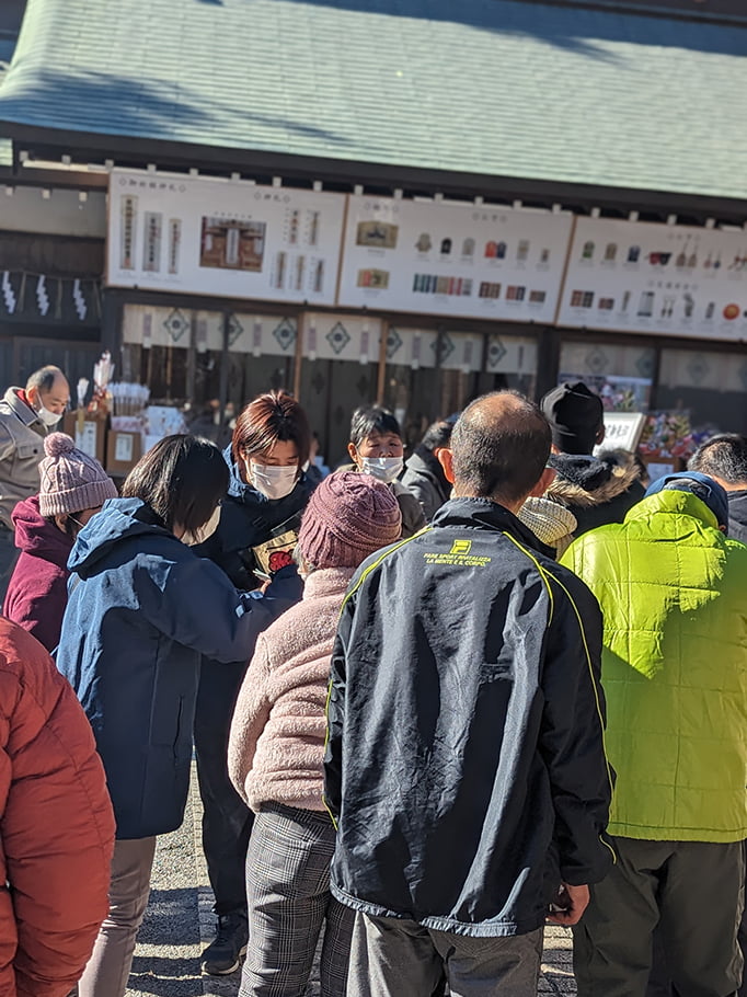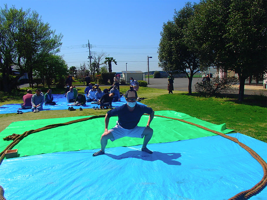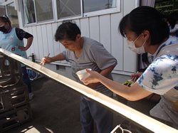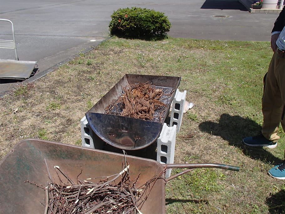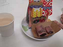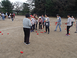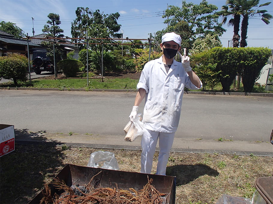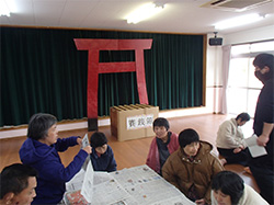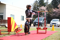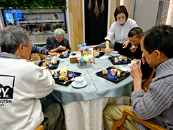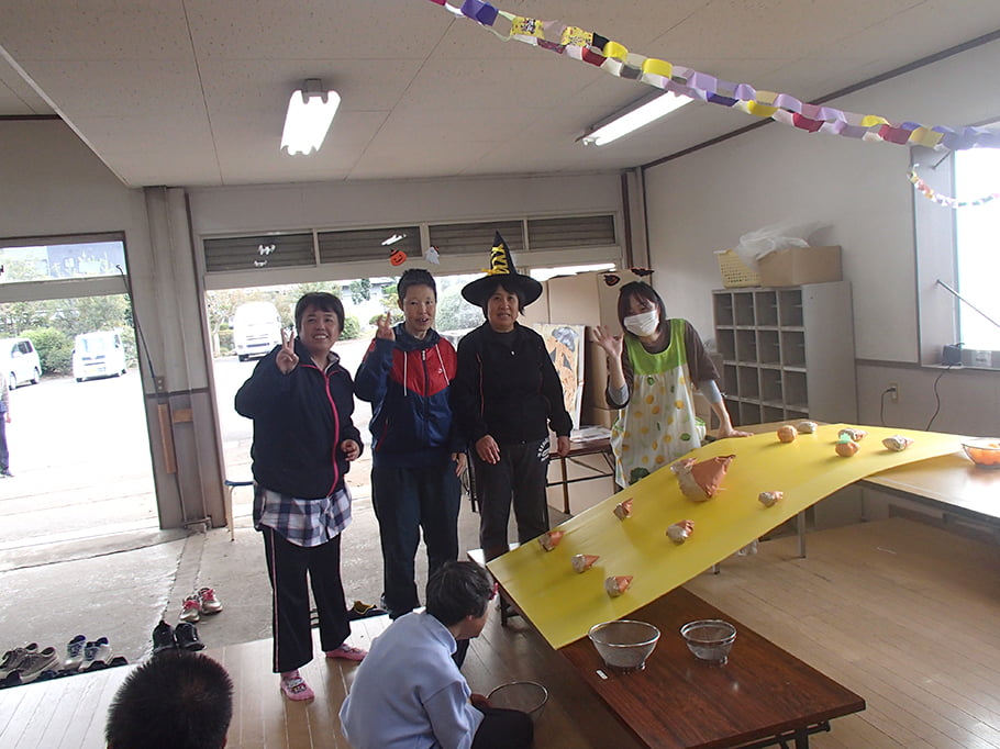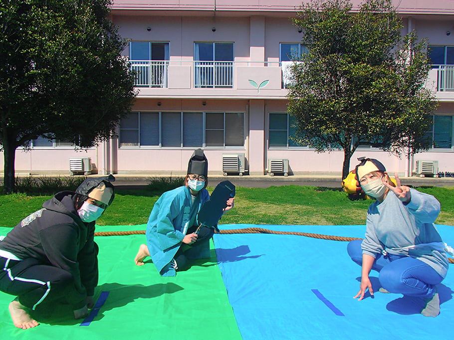 | 青空の中、「ヨイショ」「ヨイショ」と掛け声掛けてのお餅つき。お正月の鏡餅作りをしました。 | ||