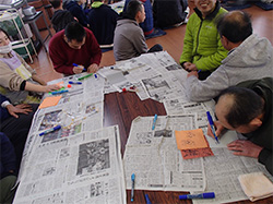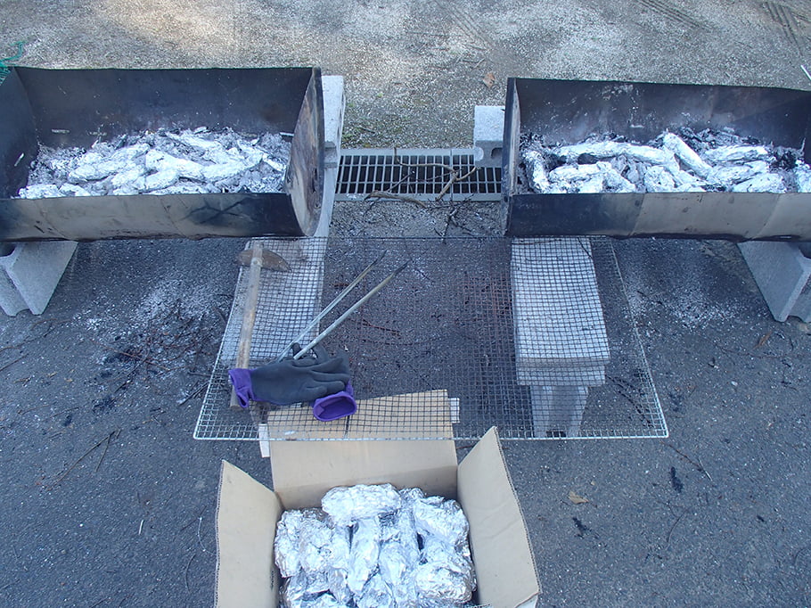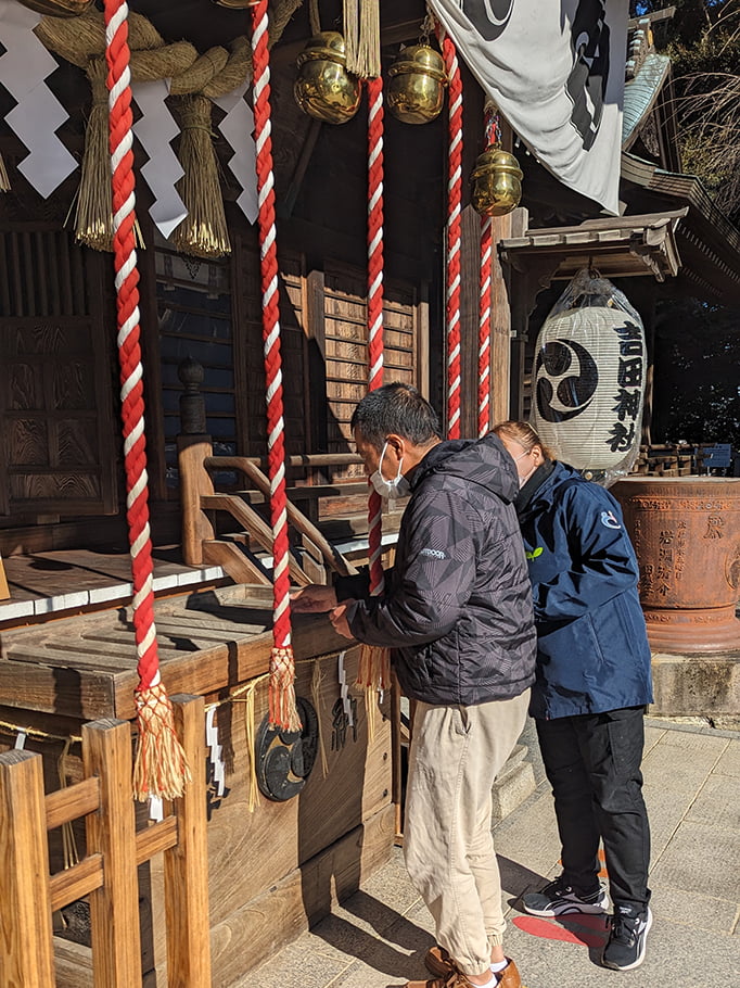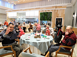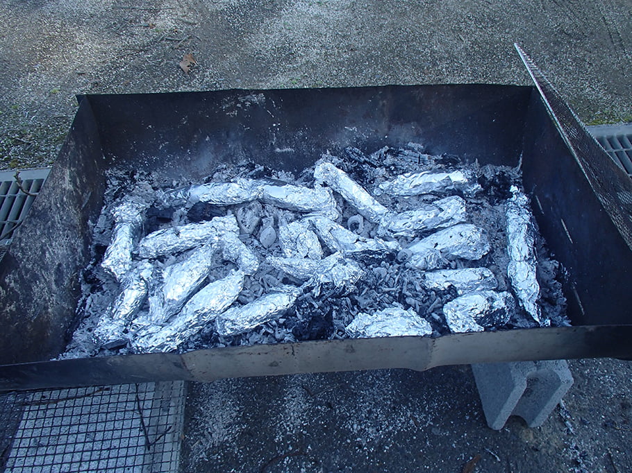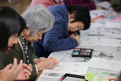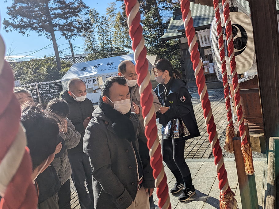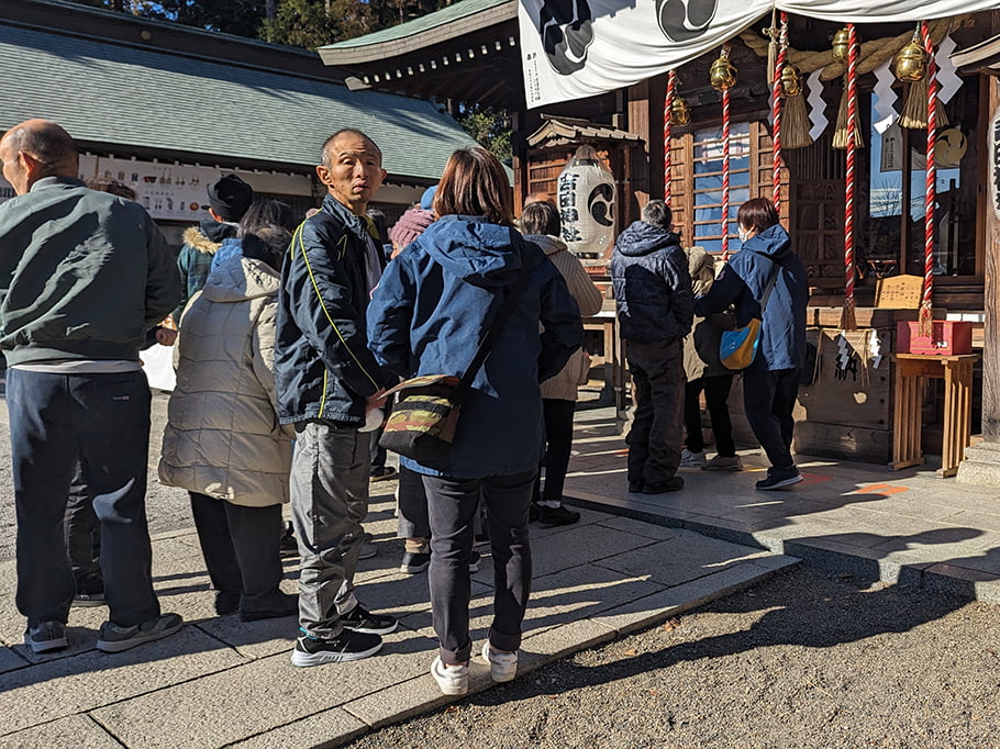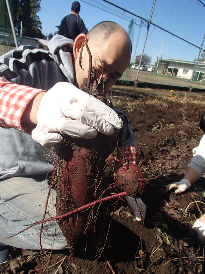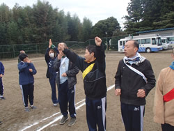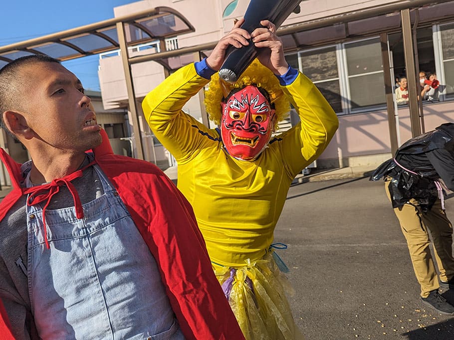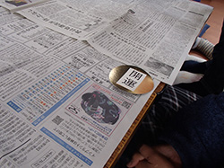 | 青空の中、「ヨイショ」「ヨイショ」と掛け声掛けてのお餅つき。お正月の鏡餅作りをしました。 | ||