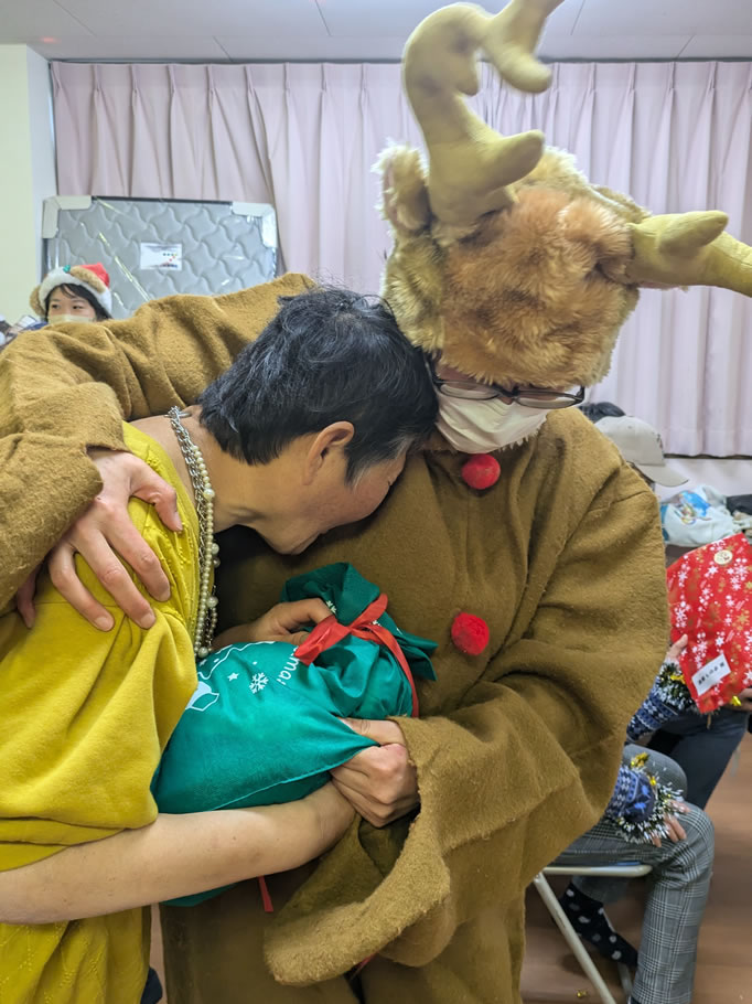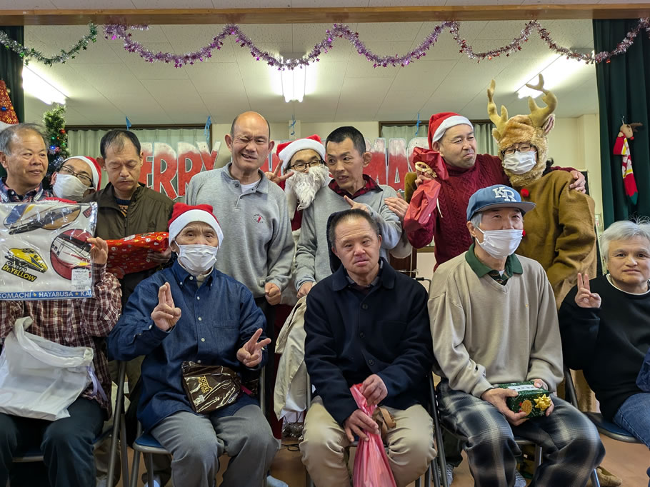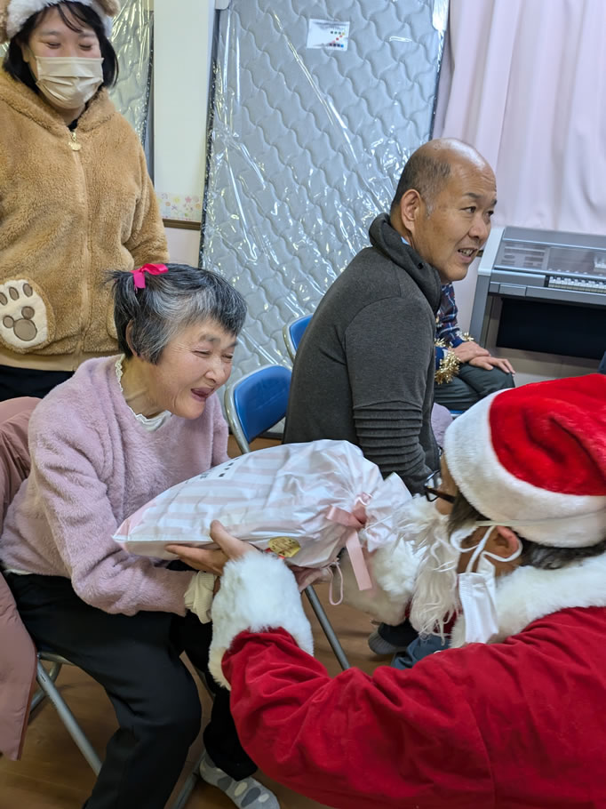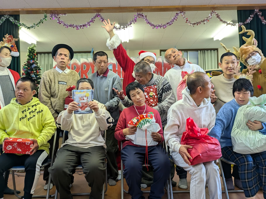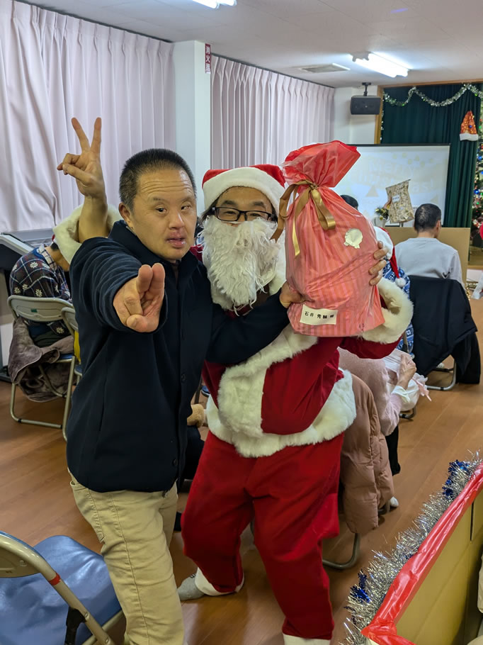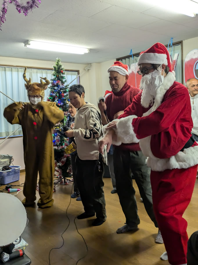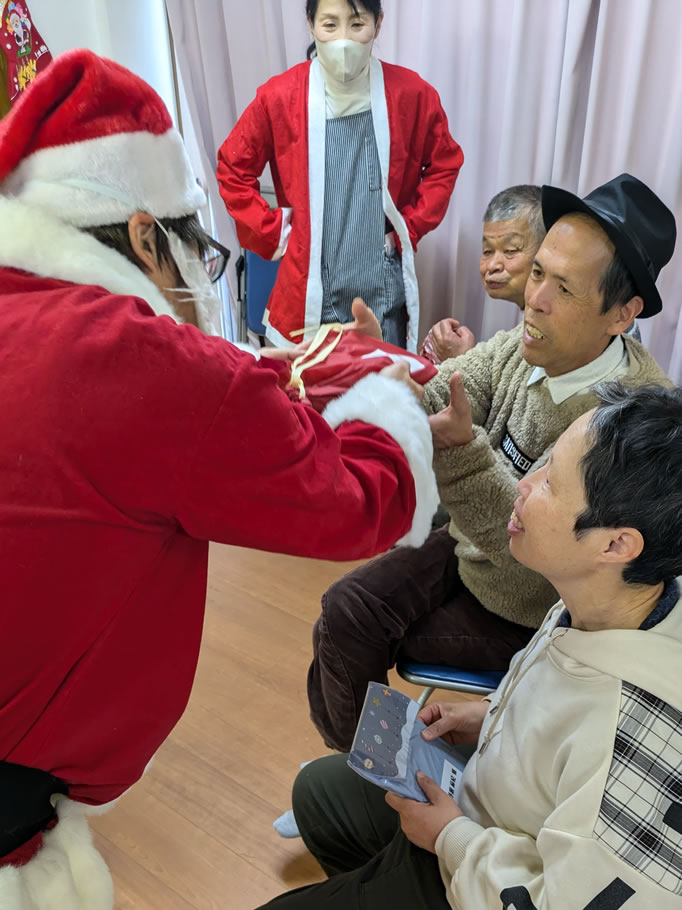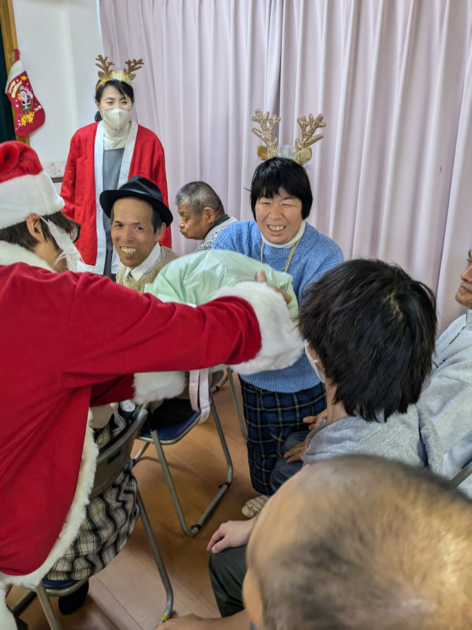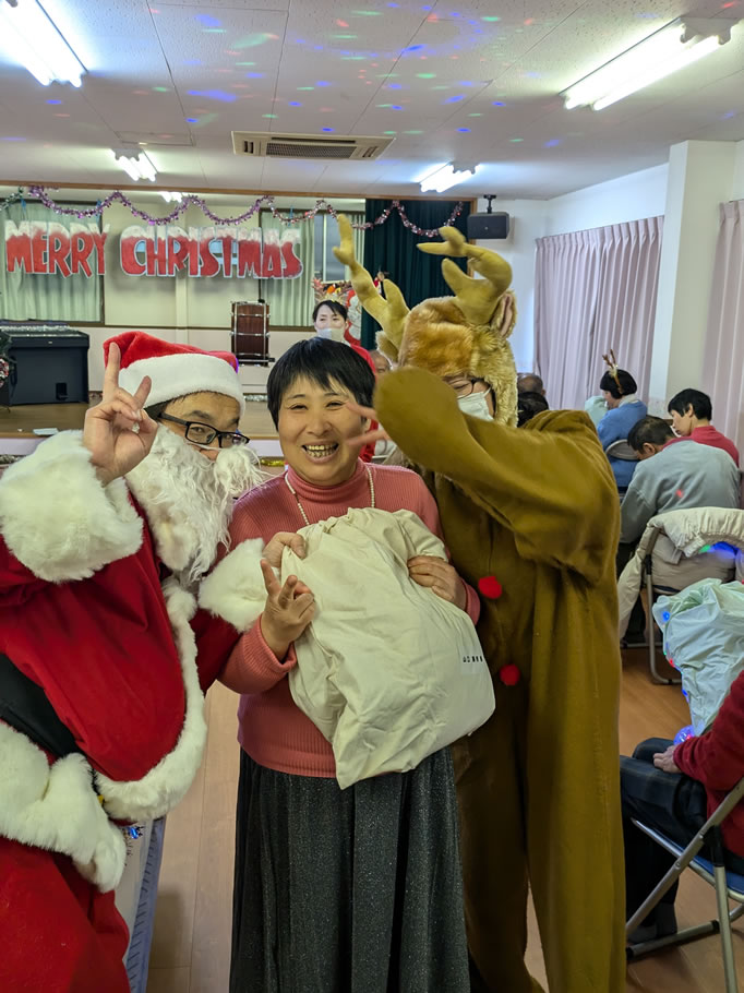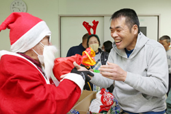 | ひたちなかベストライオンズクラブさん大きなケーキありがとうございます | プレゼントは準備OK!サンタさん・トナカイさんしゅっぱ〜つ | うれしさ溢れて笑顔満開 |