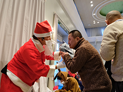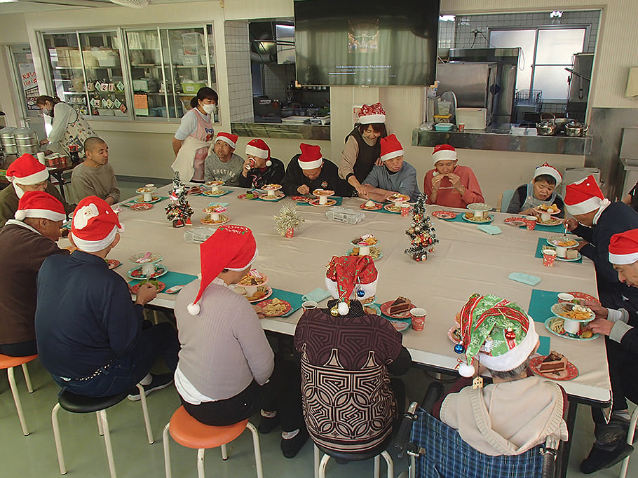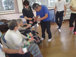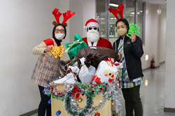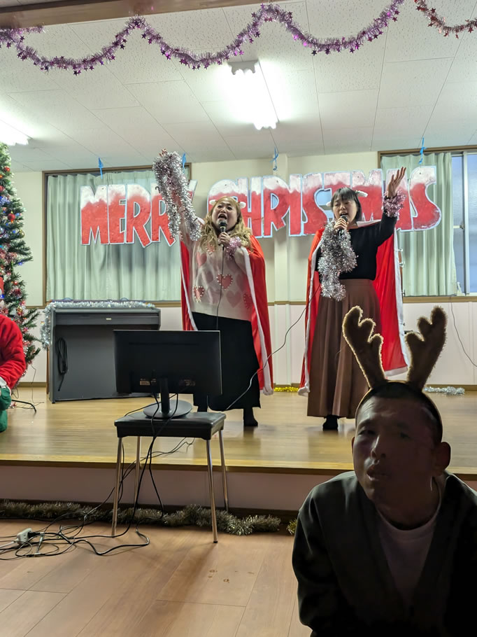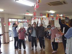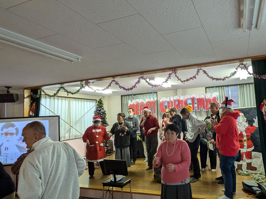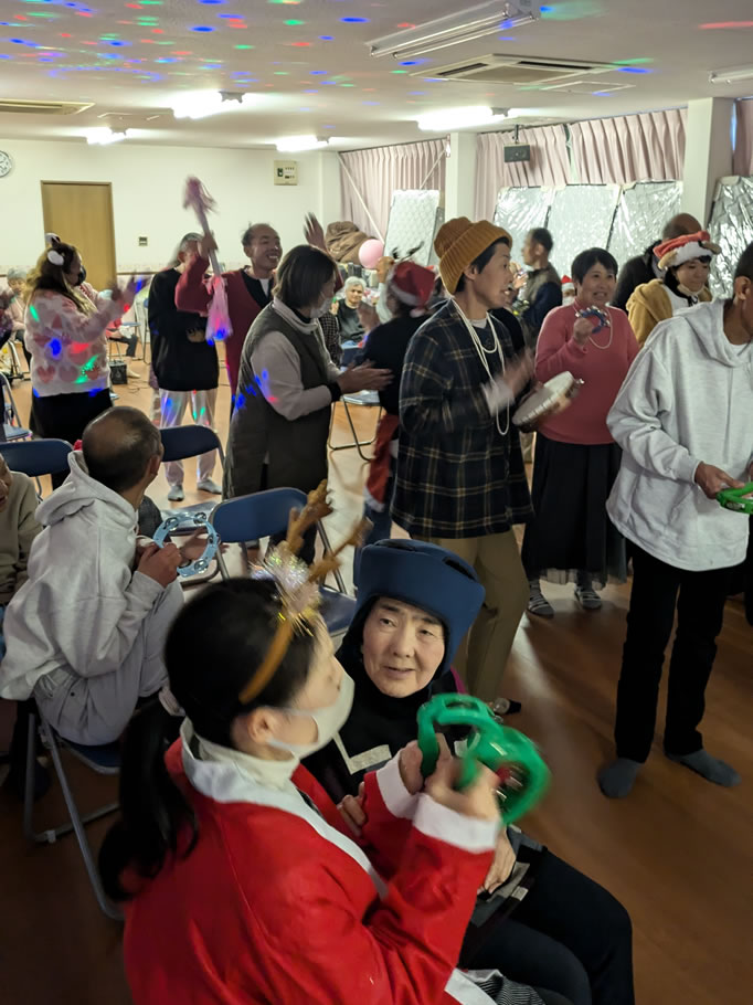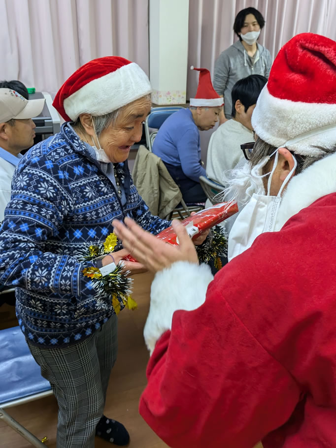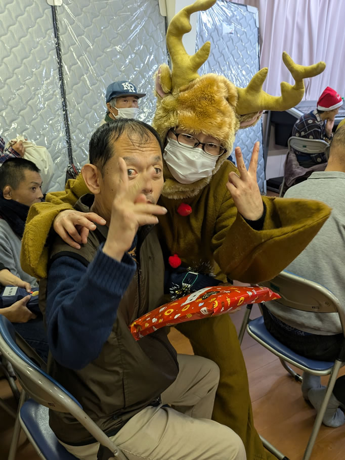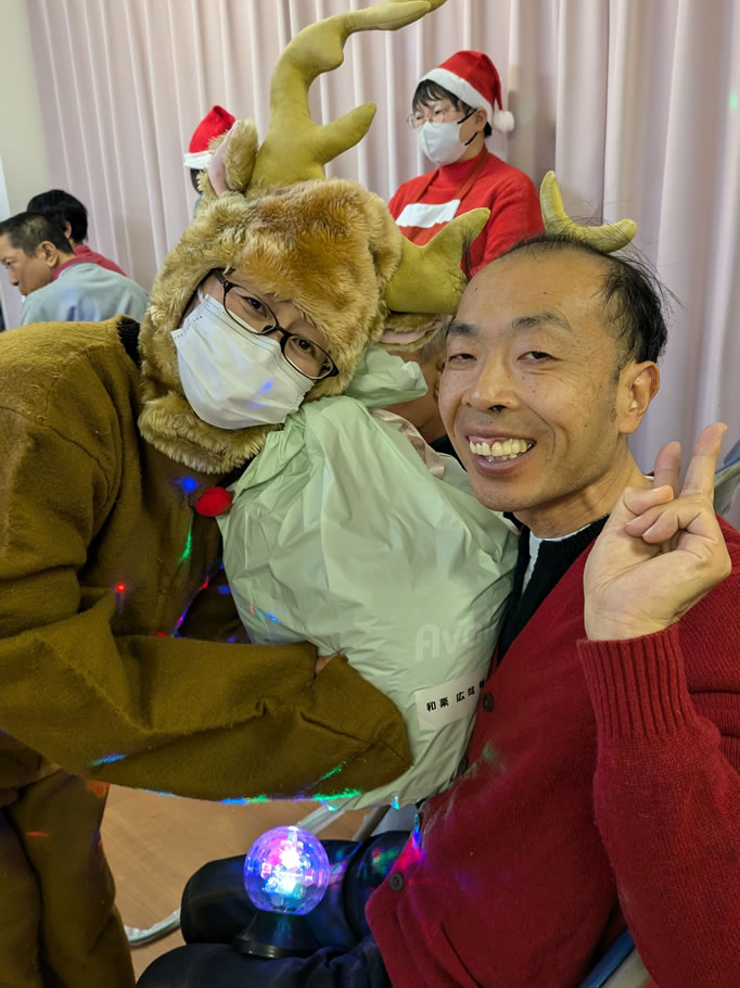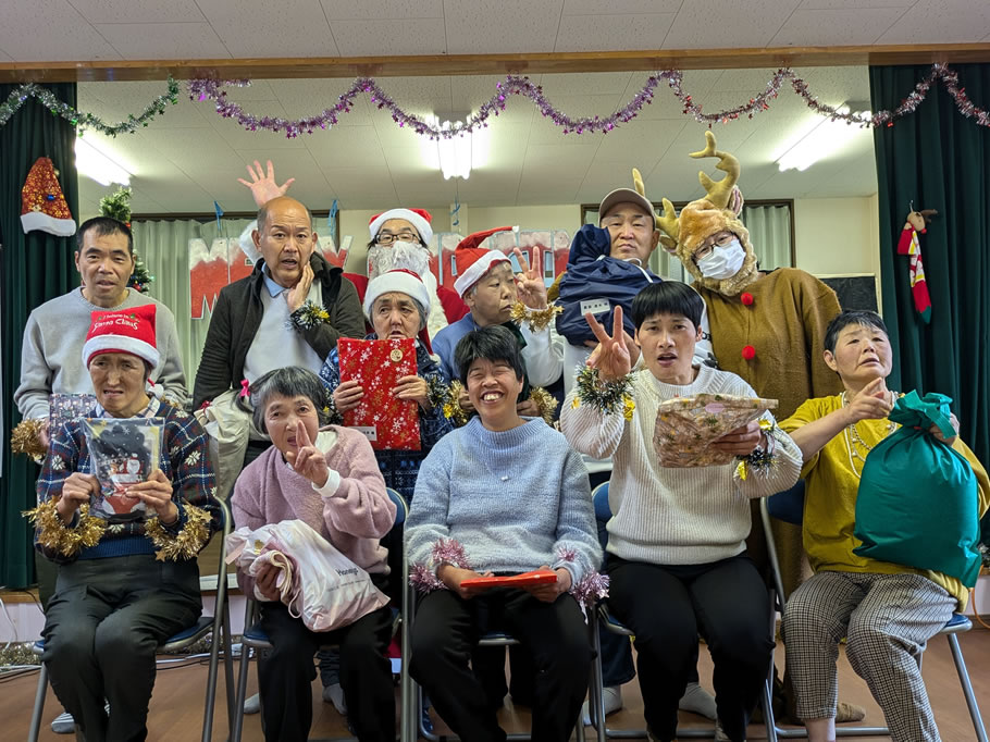 | ひたちなかベストライオンズクラブさん大きなケーキありがとうございます | プレゼントは準備OK!サンタさん・トナカイさんしゅっぱ〜つ | うれしさ溢れて笑顔満開 |