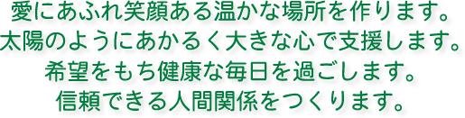 ご利用者様と、共に笑い・共に喜び・共に助け合い・共に幸せを感じながらの、